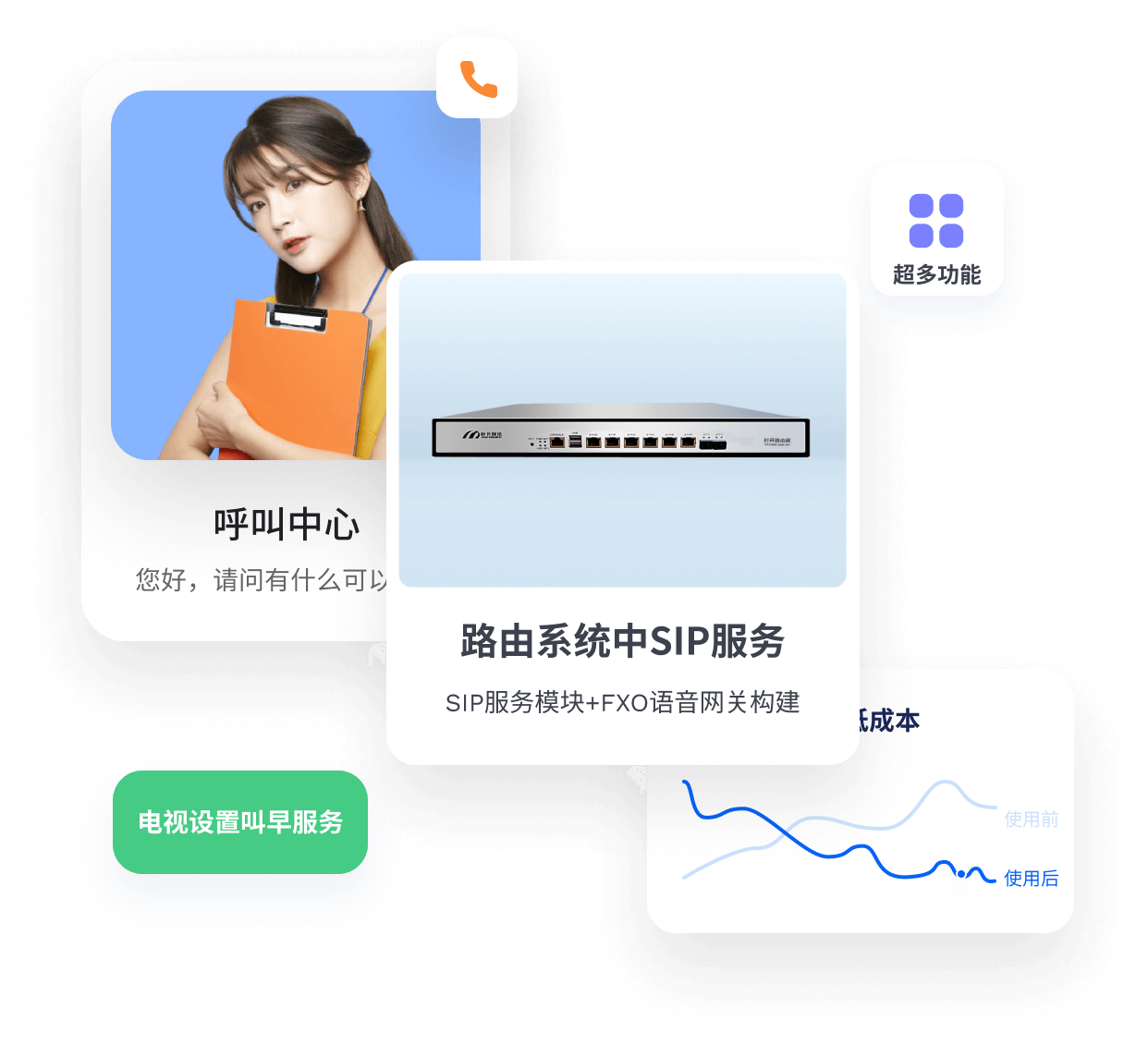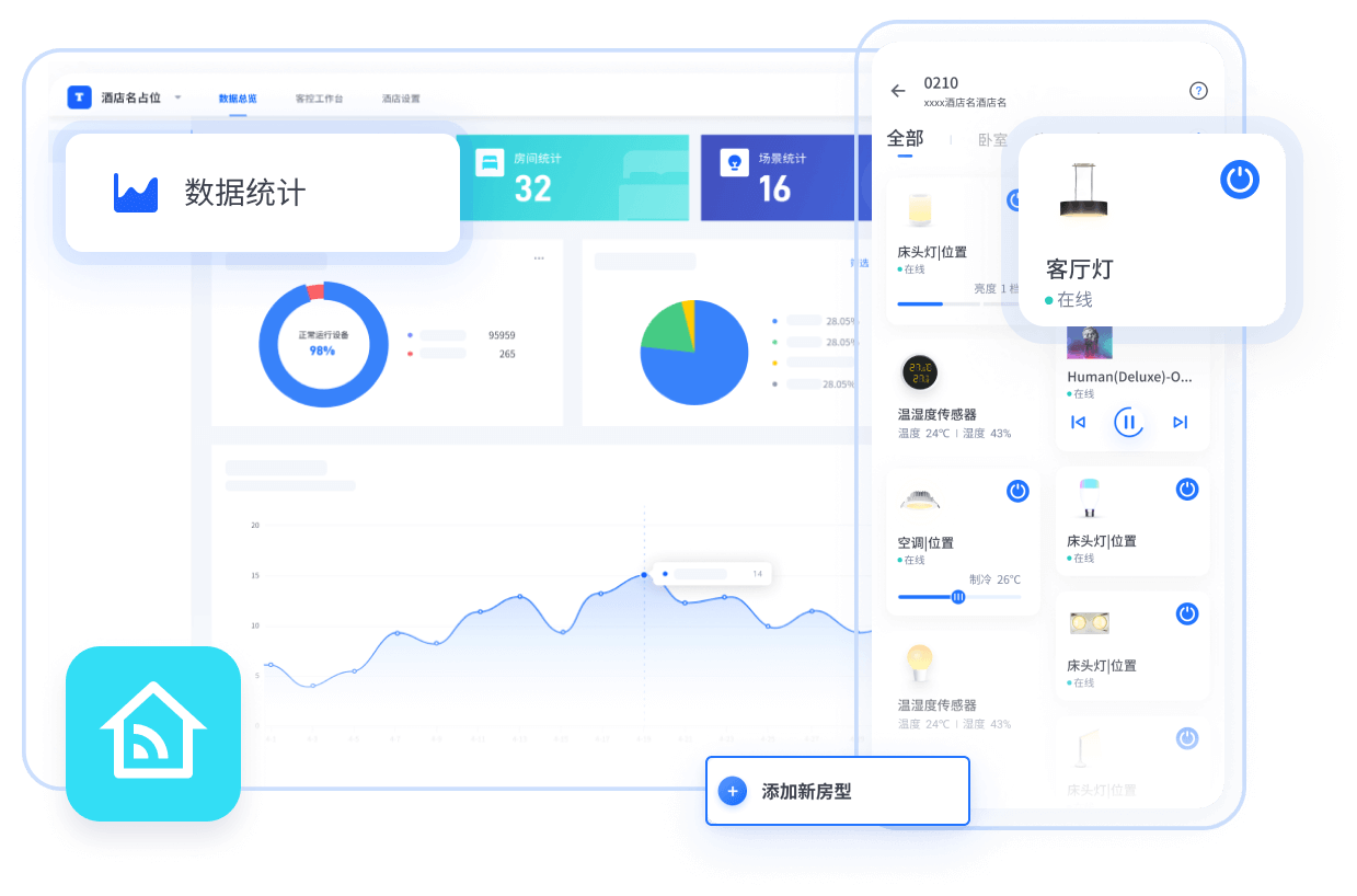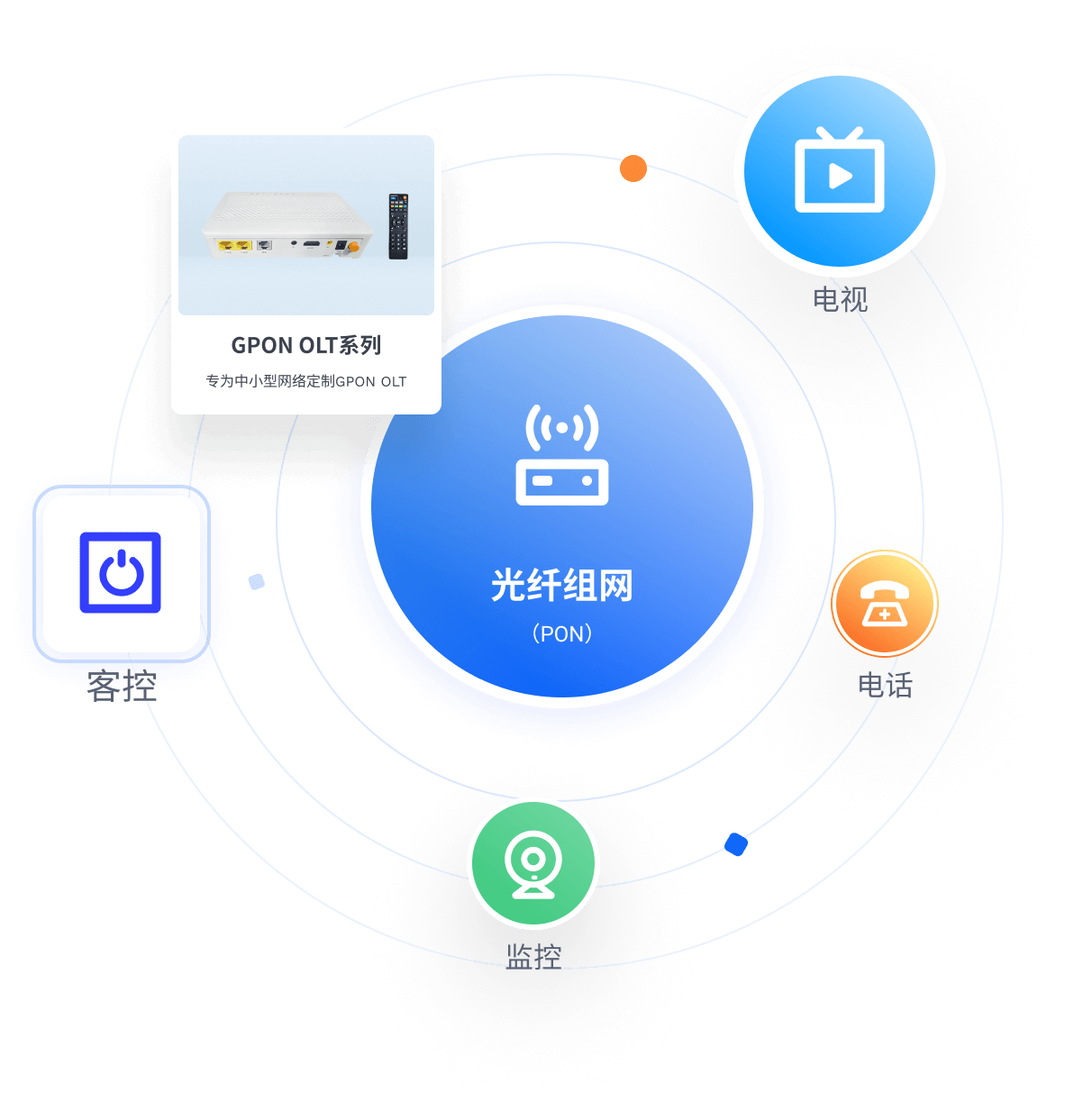 一房一机满足PON接入、WiFi覆盖、电话、电视、客控等综合需求;