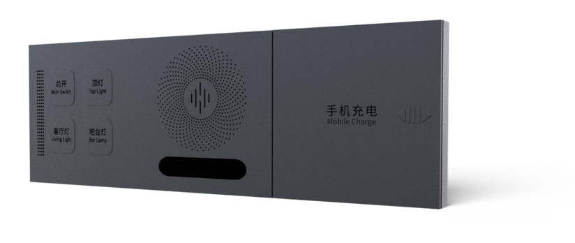 86型三联板,本地语音+模式开关+USB充电+红外遥控+温湿度传感器组合。