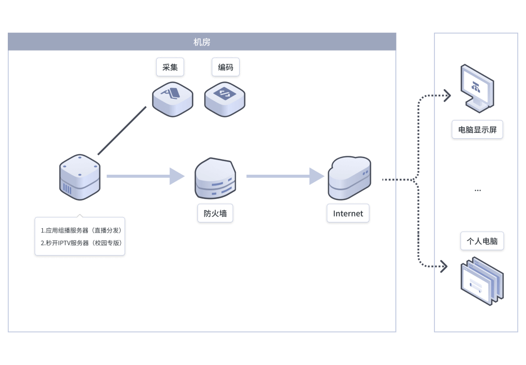 应用层组播系统、多媒体教学系统和用户终端组成,他们共同构成基于P2P机制的内容分发及传输网络。
