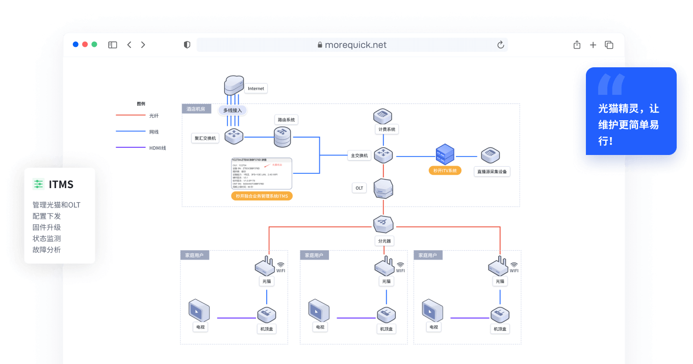 这是一个小区宽带运营商使用秒开融合业务管理系统ITMS的集中管理光猫的案例。